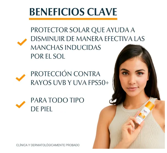 Eucerin® Sun Face Pigment Control FPS 50+ es un protector solar facial de uso diario para todo tipo de piel que ayuda a prevenir la hiperpigmentación inducida por el sol. La Advanced Spectral Technology combina filtros UVA/UVB fotoestables y de banda ancha¹ para una protección UV muy alta con Licochalcona A para neutralizar los radicales libres causados por la luz UV y HEVIS. El protector solar facial Anti-Pigment también incluye Ácido Glicirretínico, que favorece el mecanismo de reparación del ADN de la piel.